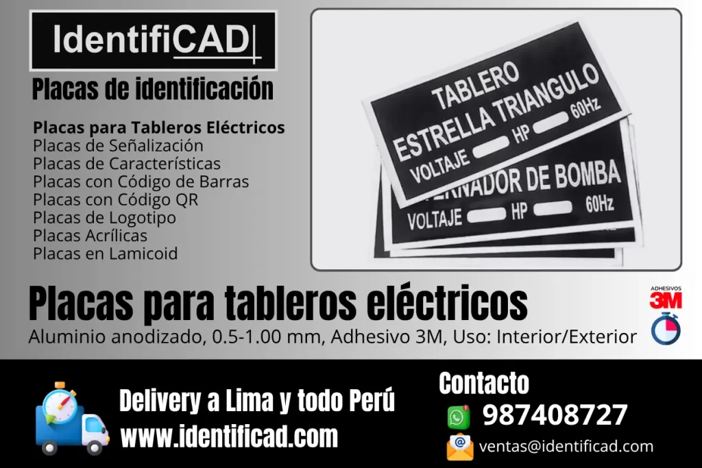 Placas grabadas para tableros eléctricos | Identificad Perú